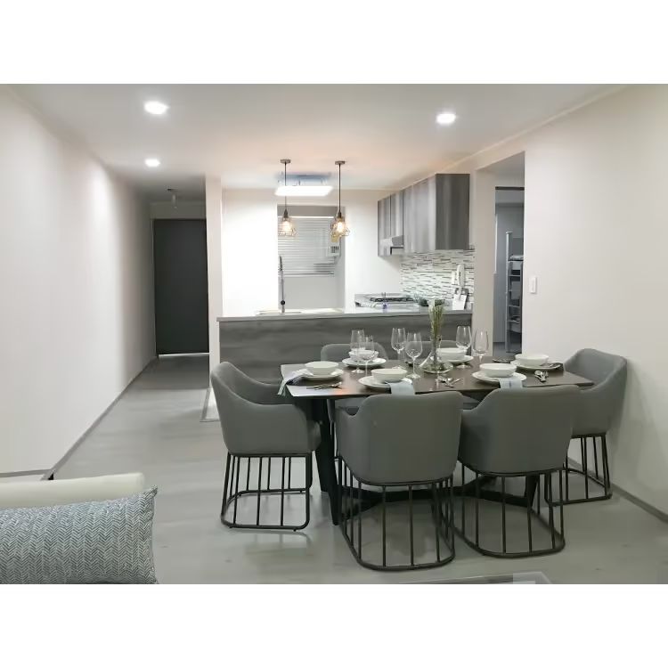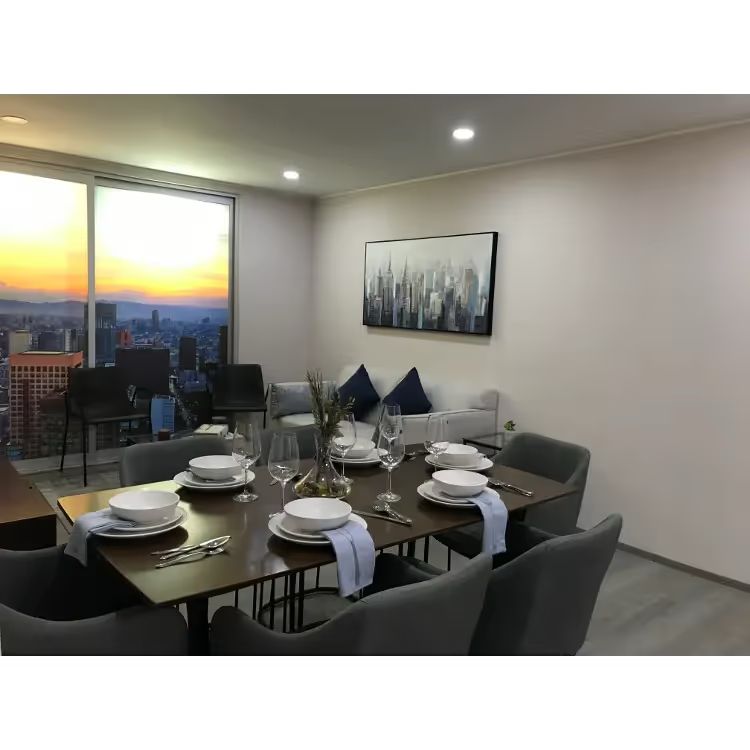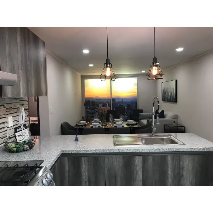 Imagina despertar con la luz dorada filtrándose por ventanales de piso a techo y vistas a jardines elevados que envuelven el proyecto con un manto verde. En este departamento de Dos recámaras y dos baños, el diseño biofílico dialoga con líneas minimalistas: paredes en tonos tierra sofisticados, pisos vinílicos de alta gama con textura natural y detalles metálicos que reflejan la luz para ampliar visualmente los espacios.